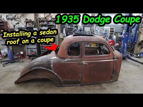 Part 6 of our 1935 Dodge coupe build. In this video, we pull the body off the frame table and remove what’s left of the original frame. After we get the sedan roof fit to the coupe body.